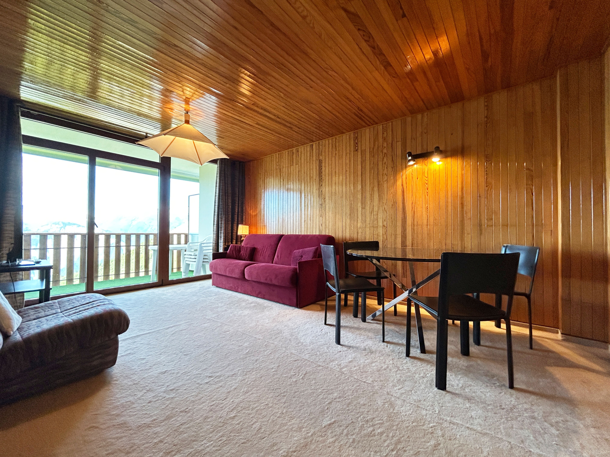Situé dans une copropriété d’une vingtaine d’appartements, au calme, dans le quartier du Vieil Alpe, ce bien plein de potentiel offre une agréable pièce de vie s’ouvrant sur une grande terrasse orientée plein Sud.
