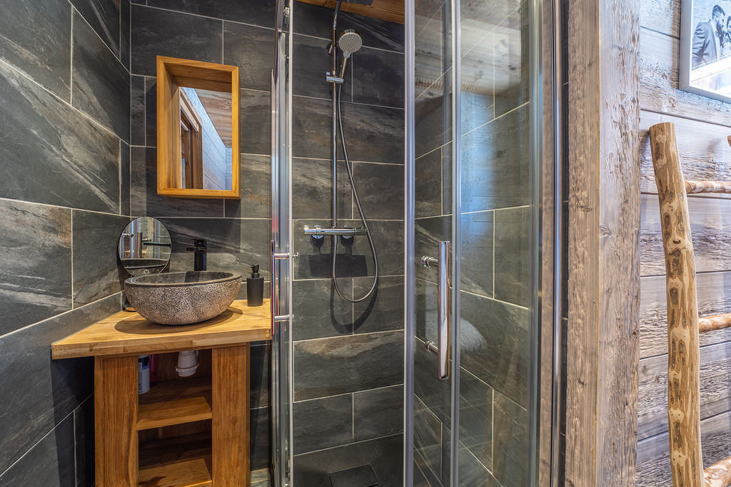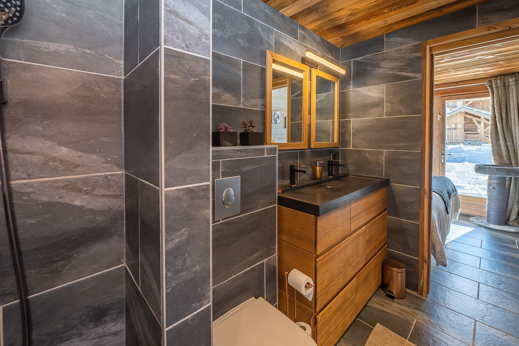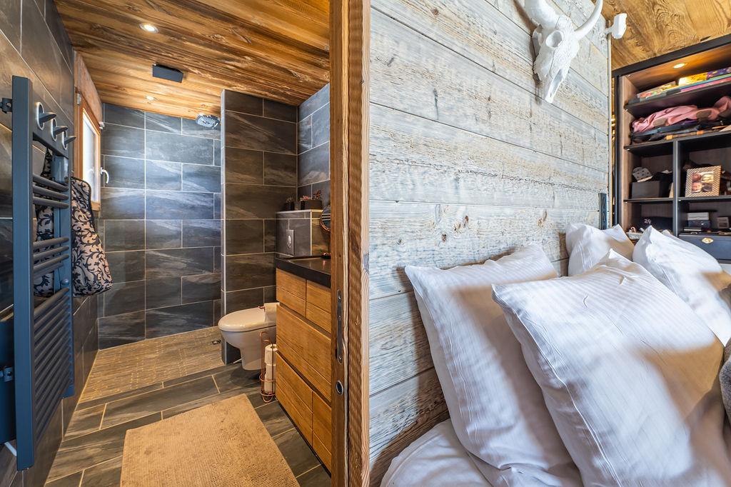 Il possède 2 chambres et un coin nuit, 2 salles d’eau, et des toilettes séparées.