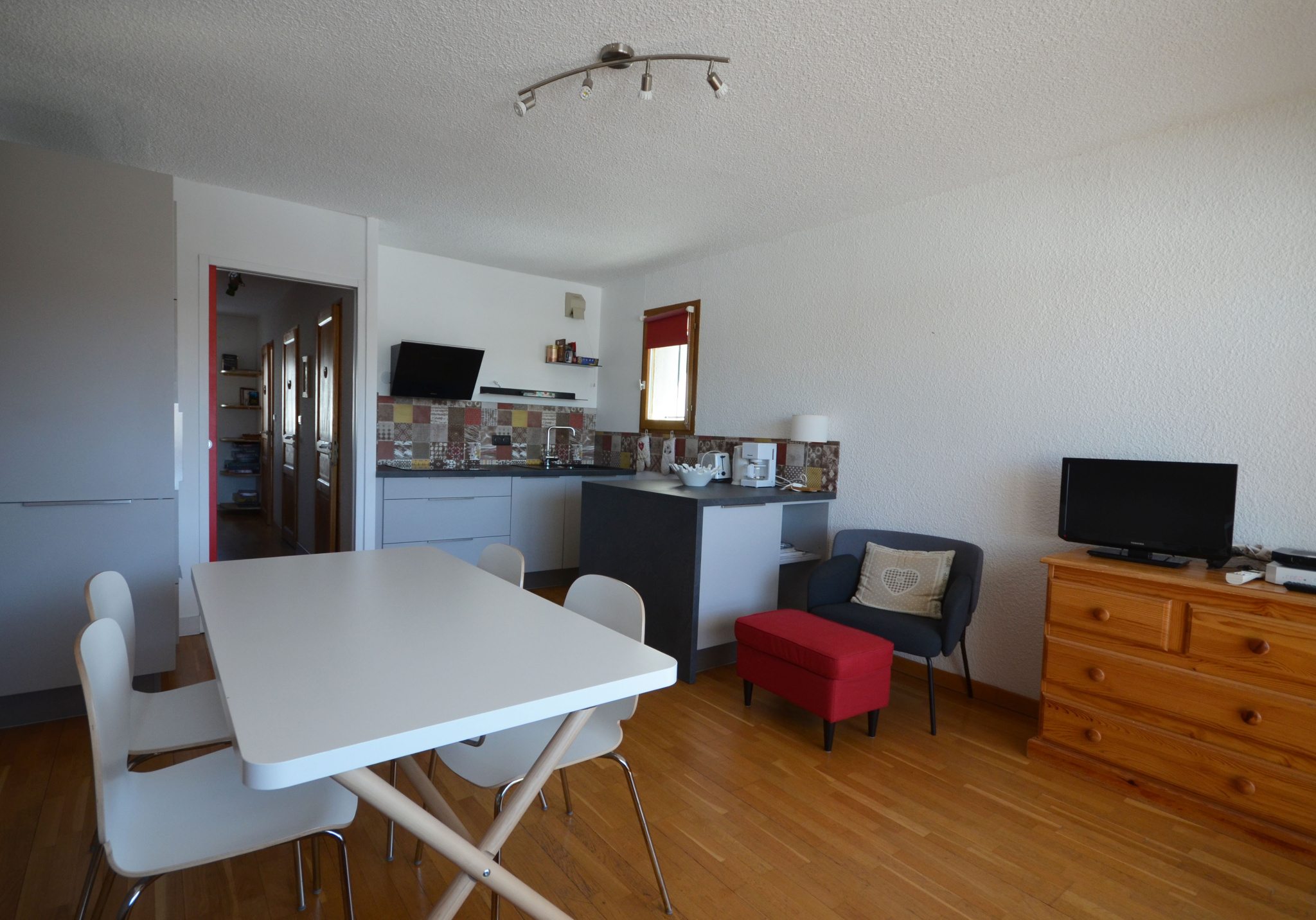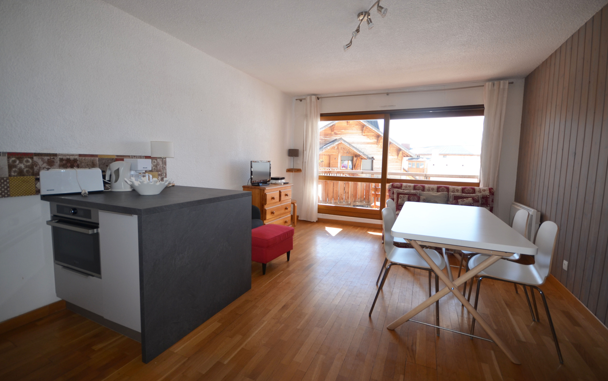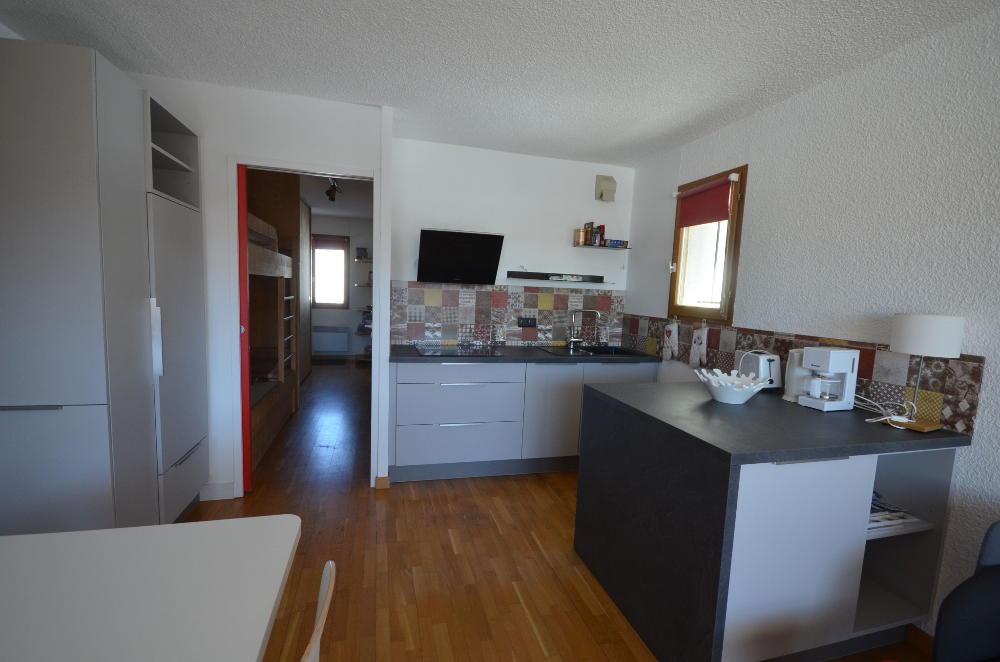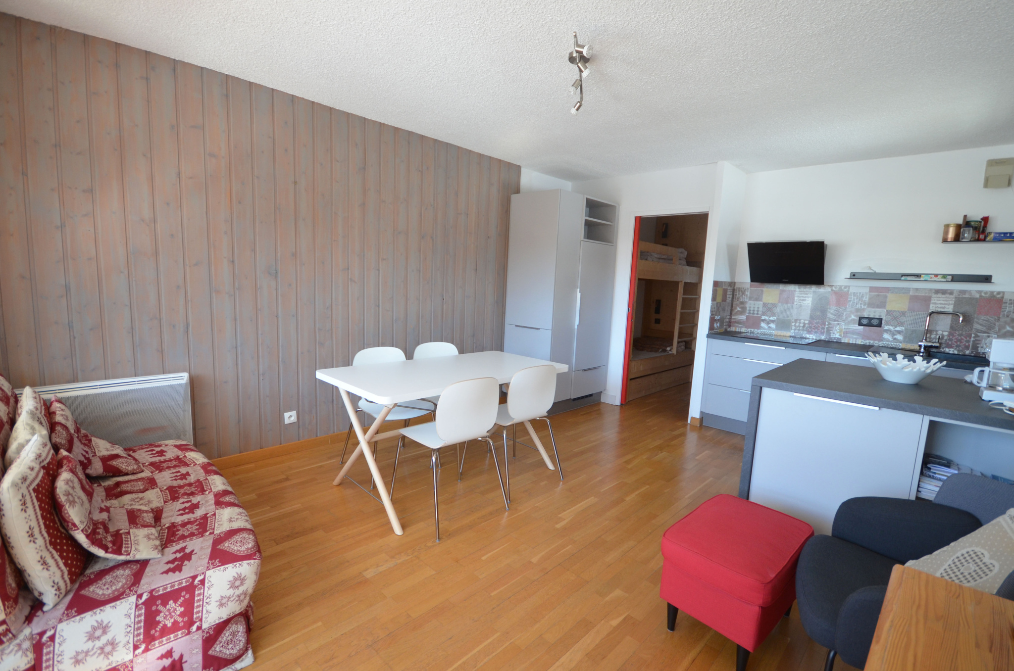 Il se compose d’une chambre avec lit double, un coin montagne avec 2 lits superposés, et un séjour très agréable.