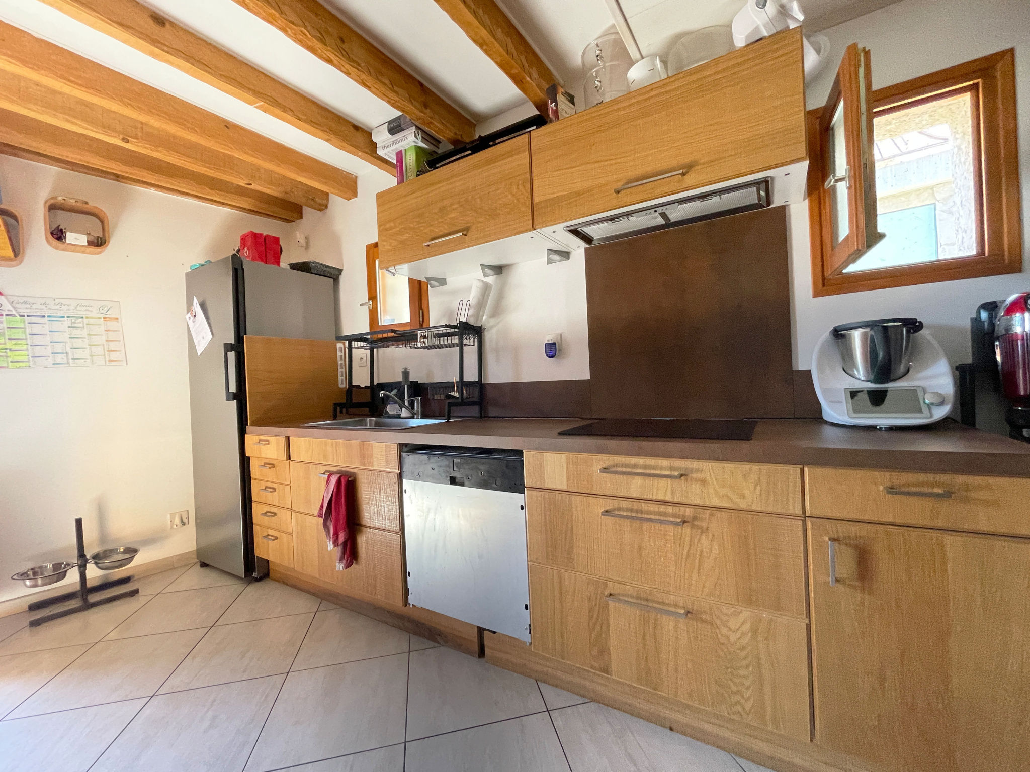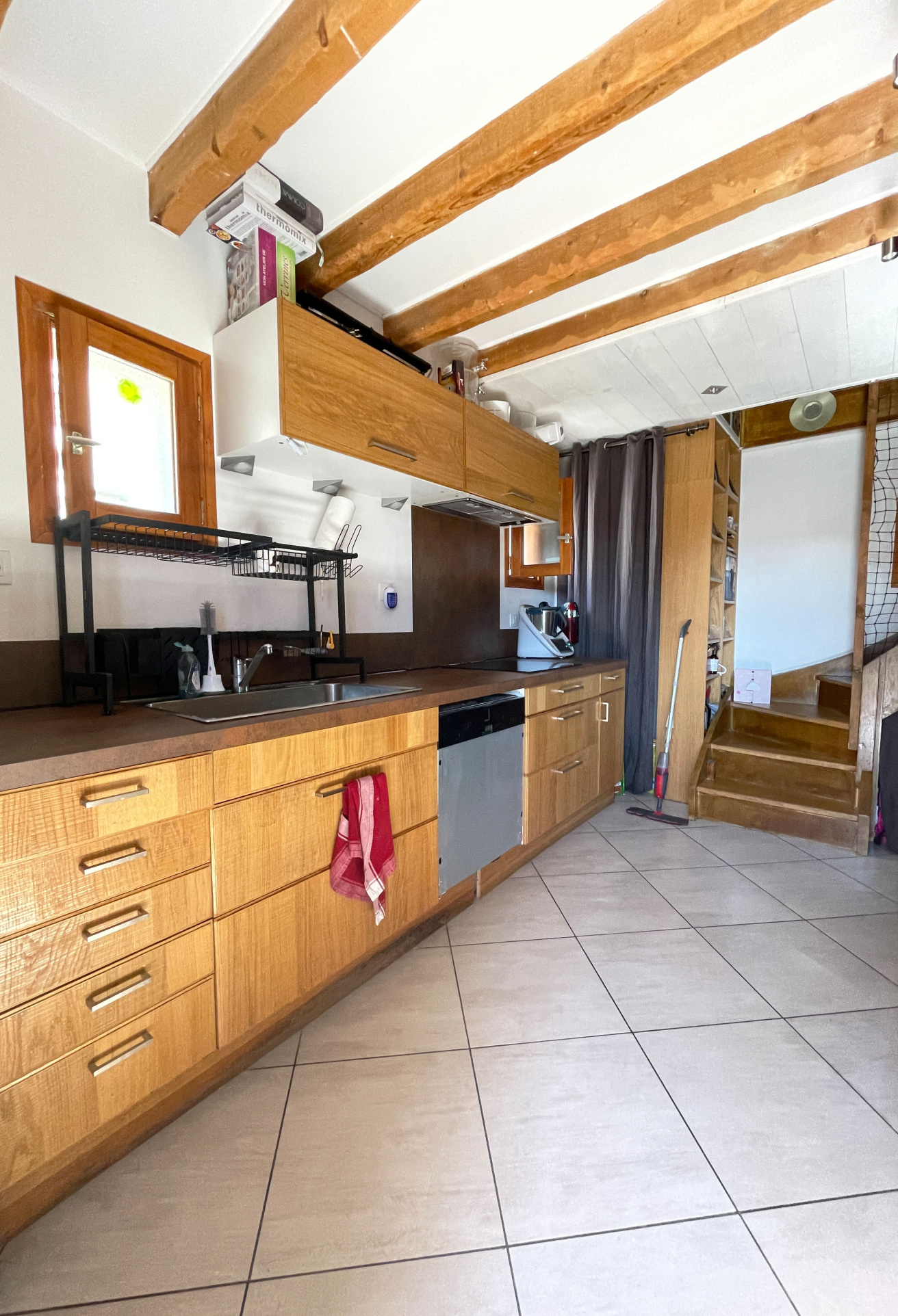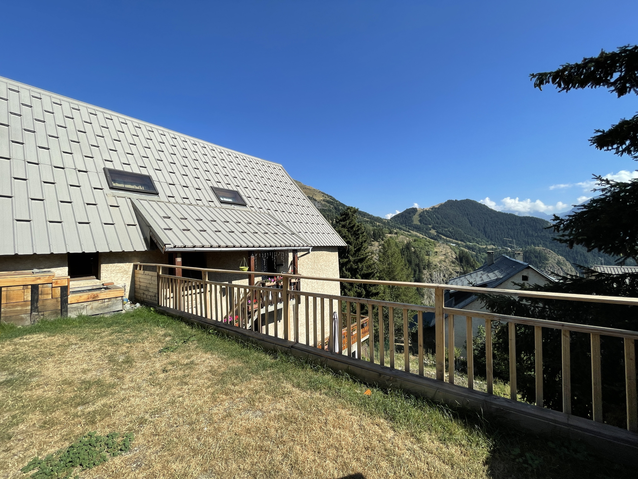 De plain-pied se trouve un grand séjour/cuisine donnant accès à 2 terrasses Sud et Ouest avec vue sur les montagnes. Vous profiterez aussi d’un jardin en contrebas entièrement aménagé aux vues imprenables sur le massif des Ecrins. Il offre également un grand espace de rangement et de stockage.