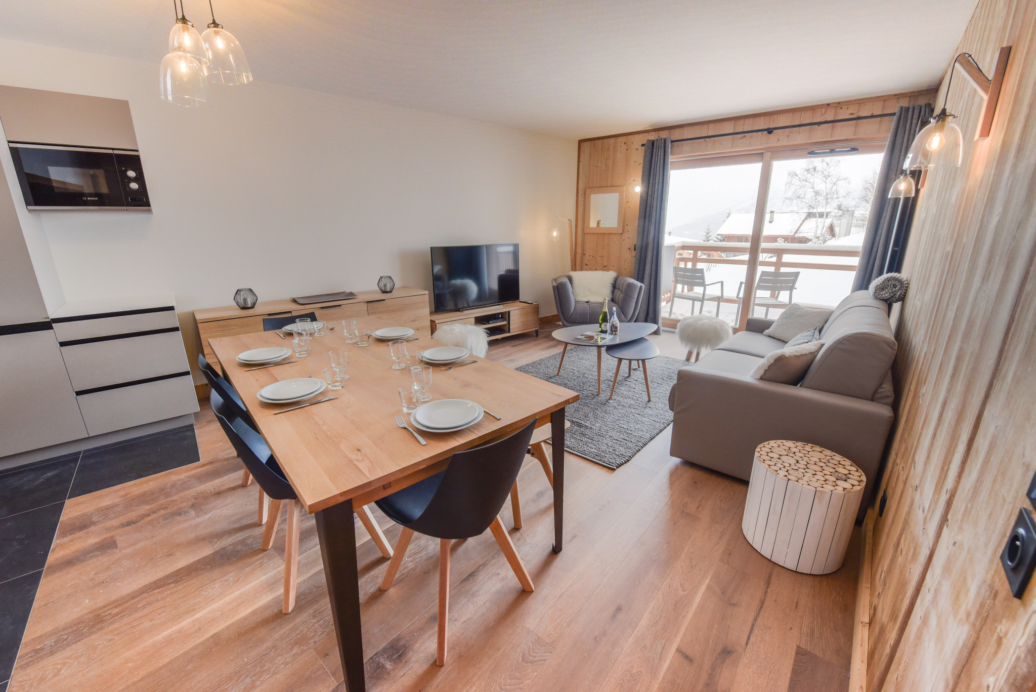 Très bel appartement de 70 m2 situé dans la résidence récente du Hameau de Clotaire, au cœur de la station de L’Alpe d’Huez.