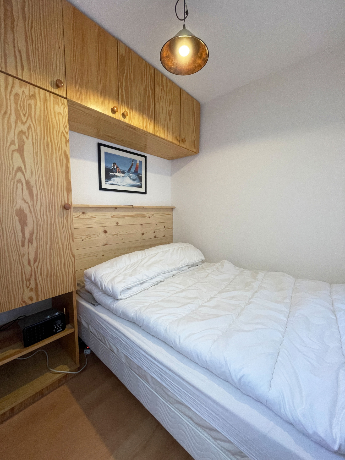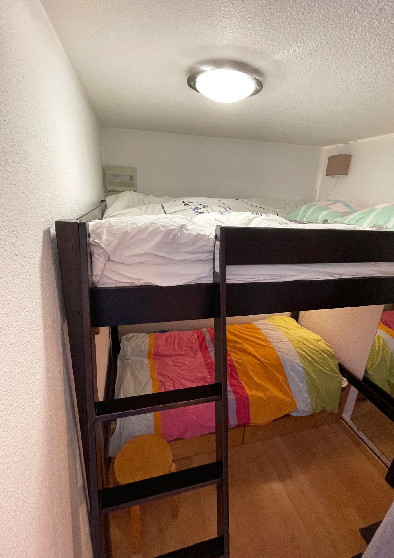 Il possède 2 grands coins nuits accueillant des lits doubles, et beaucoup de rangement.
