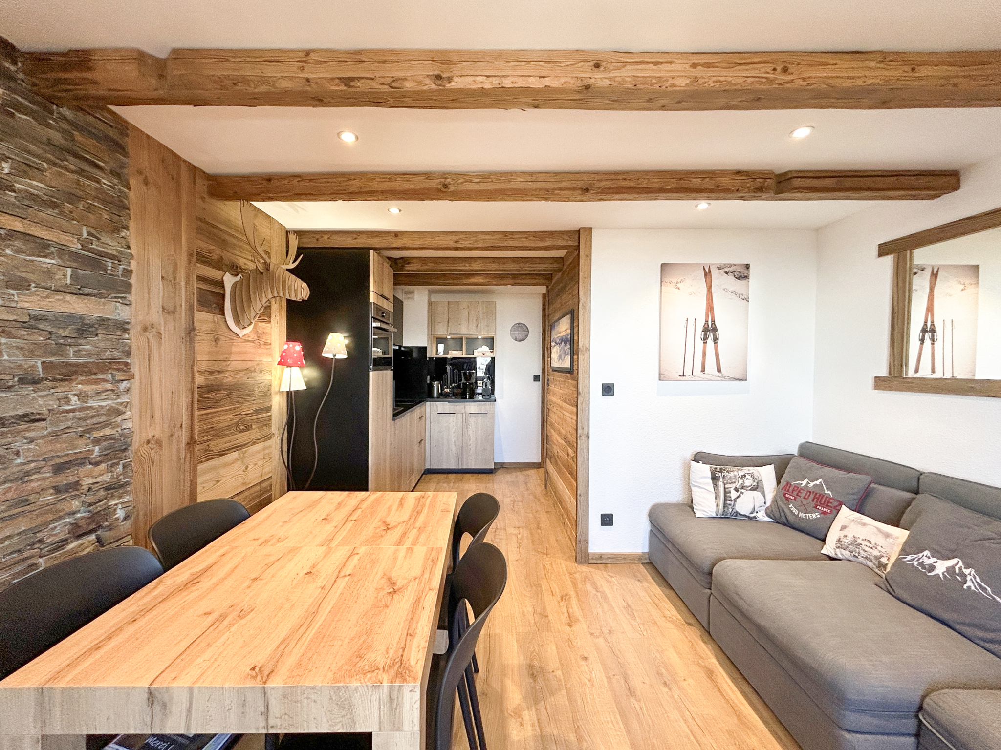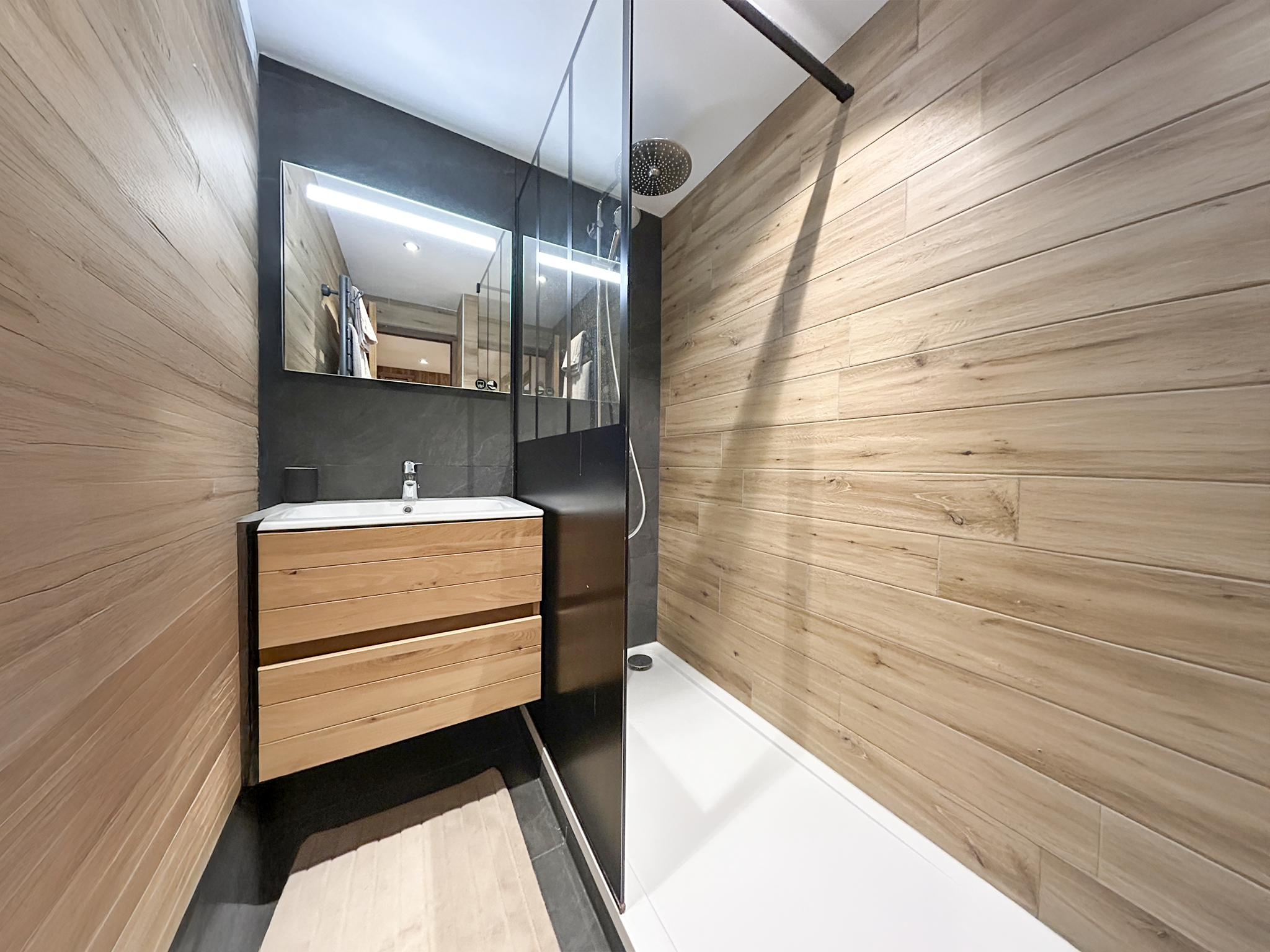 Très bien agencé sans perte d’espace, il se trouve au 7ème étage (avant dernier), et s’ouvre sur une grande terrasse Sud vue montagnes sans vis-à-vis. La cuisine est entièrement équipée. Nombreux rangements.
