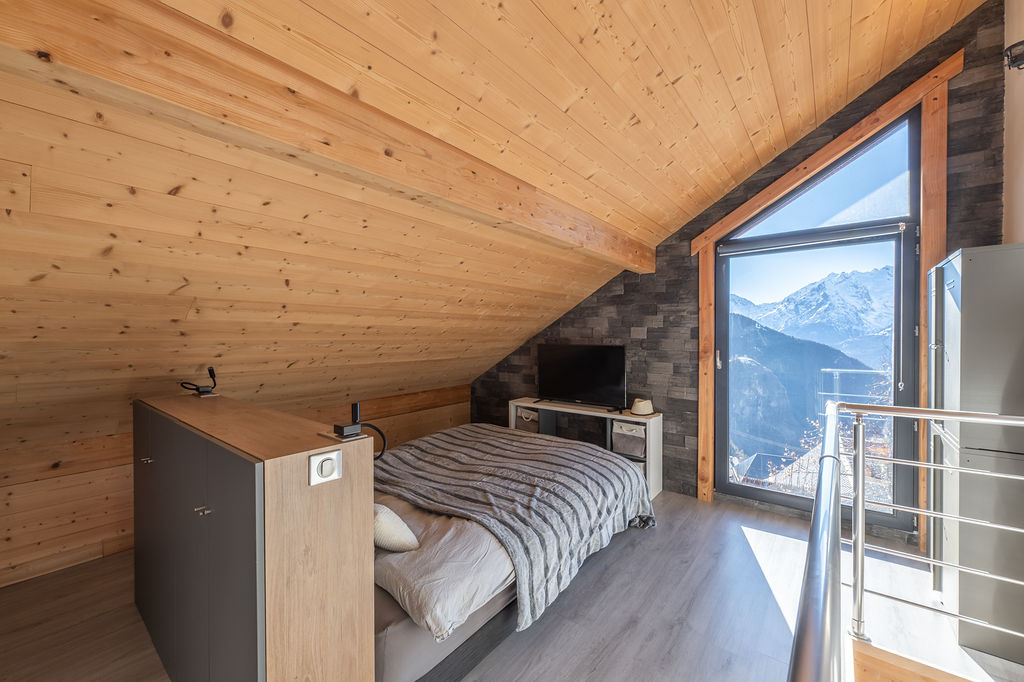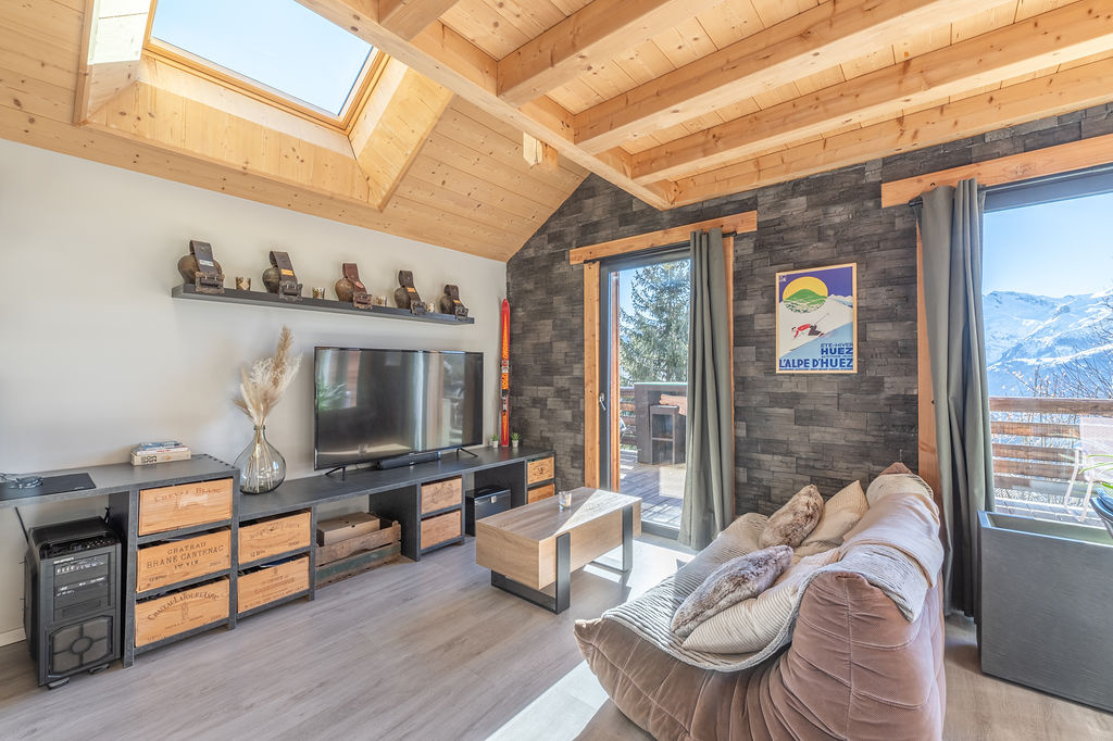 Situé juste au-dessus du village d’Huez, ce très joli chalet mitoyen de 115,7m2 au sol dont 78m2 de surface Carrez, et refait récemment à neuf, se compose de 3 belles chambres lumineuses : 2 en rez de jardin avec salle d’eau et wc attenants, et la troisième sous les toits avec salle d’eau en suite.