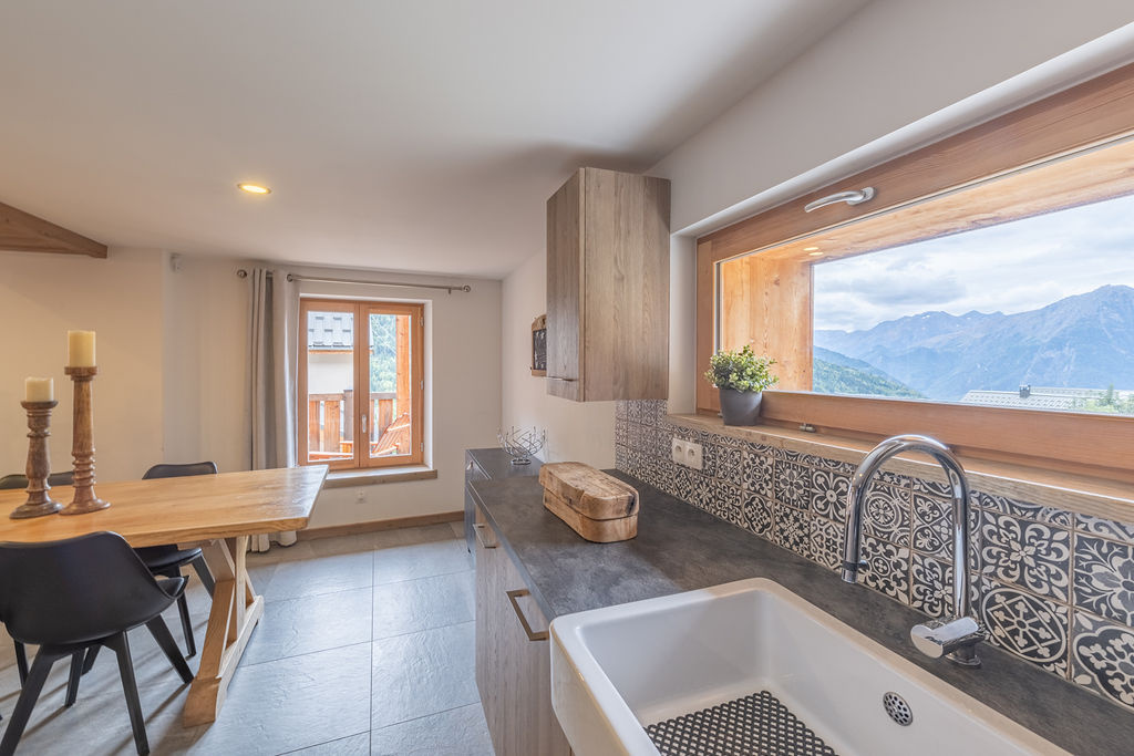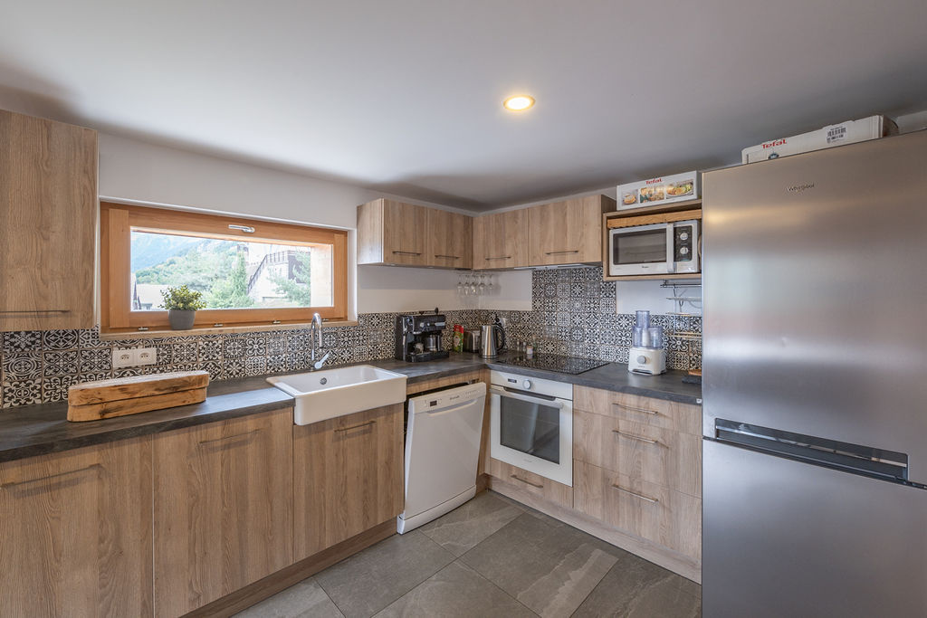 Rénové avec des matériaux de qualité, il possède tous les atouts d’un appartement de montagne alliant la pierre et le bois.